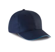 100% algodão sarjado. 6 painéis. Sandwich em contraste. Ajuste com fivela metálica.