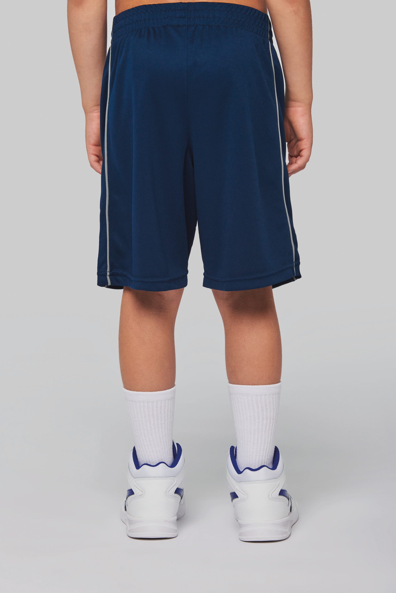 100% poliéster. Cintura elástica com cordão de ajuste. Detalhe em contraste nas costuras frontais e nas costas. Acabamento da bainha com costura dupla.
